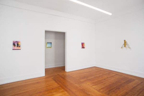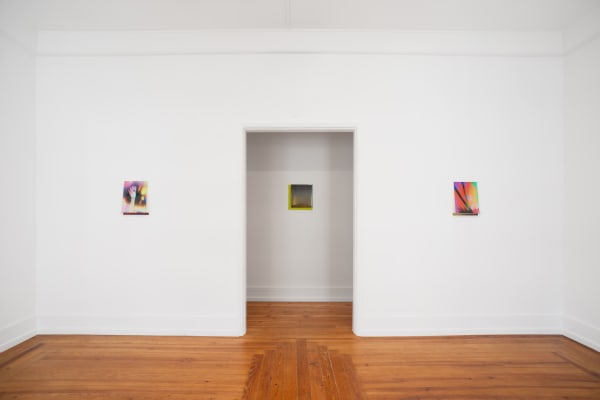 Mariko Makino, a New York-based sculptor who explores neon as her primary medium, crafts her work by drawing parallels between nature's processes and the personal experiences that shape us. In contrast to commercial signs designed to grab pedestrians' attention, Makino's light sculptures are inspired by nature. They aim to create an atmosphere that invites viewers to develop a more intimate relationship with this material and bask in its subtle glow. Similarly, Matthew Fischer's stained glass sculptures interact with the room’s natural light, emitting vibrant and shifting colors into the space. This quality in Fischer's pieces adds to their consideration of prehistoric mythology and anthropomorphic figures transformed into deities, creating sculptures that reference both a Catholic church’s stained glass windows and a neolithic carving. Victoria Fu has been working with anonymous stock images to reflect on the expanded nature of vision in an increasingly digital world. However, rather than criticizing screens, Fu explores their materiality and impact on visual culture. Establishing a dialogue with Fu, Sara Greenberger Rafferty references found imagery and the post-color pre-digital period, as well as light’s refraction through the gesture of recomposing broken pieces and layering them in the kiln. As a pivotal aspect of her practice, Greenberger Rafferty has been delving into glass through kiln forming. Historically intertwined with the evolution of photography, glass allows the artist to further reflect on our evolving concepts of visual perception.