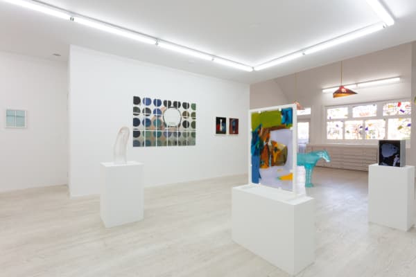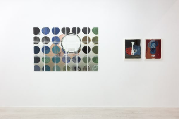 Graham Collins uses various material approaches and substrates (ceramic, cut and quilted paintings, above ground pools) to broadly reflect on the traps, tributaries and conventions of painting as a primary vehicle for western art history. Ever-challenging the ease of viewing an artwork, Collins’ utilizes obfuscation and the viewer’s body movement as tool to experience his work. This exhibition includes one of his iconic tinted-glass works, comprised of commercial window tint on framed glass which partially shields a monocratic canvas within.