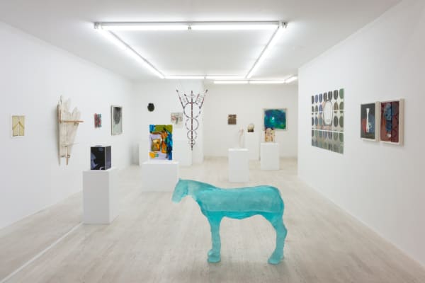 Ugo Rondinone works across many mediums, cannibalizing pop and primitive forms to produce work that is generous, succinct and poetic. With subtle intervention, Rondinone’s gestures turn common iconography into wondrous objects. His work in glass include cast glass horses that appear as if they were extracted from bodies of water, while his stained glass clocks convert a practical tool into a sublime vista.
